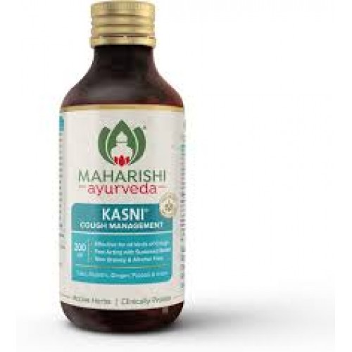 COUGH SYRUP Kasni is an effective remedy for cough of varied aetiology. Kasni counters respiratory allergies, decongests nasal, paranasal and respiratory mucosa. It is mucolytic and augments expectoration of bronchial secretions. Kasni pacifies Vata, liquifies and eliminates vitiated kapha. Kasni owes its beneficial antiallergic/antitussive/ expectorant action to time tested herbs such as Ocimum sanctum, Zingiber officinale, Pistacia integerrima, Myrica nagi etc. Kasni does not contain codeine or alcohol. It is non habit forming, and non-constipating. Kasni is safe for the patients of all age groups. It does not cause drowsiness and keeps the patient alert and active throughout the day.