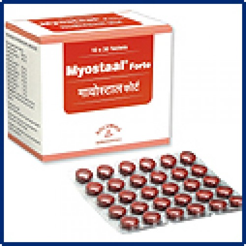 Myostaal Forte Tablets is a comprehensive formulation for the management of joint disorders. It provides combined effect of Guggulu (Commiphora wightii) and Shallaki (Boswellia serrata), established anti-inflammatory & anti-arthritics for better therapeutic efficacy. Also, it provides co-ordinated effect of herbs like Ashvagandha (Withania somnifera), Haridra (Curcuma longa), Guduchi (Tinospora cordifolia), Rasna (Alpinia galanga), Musta (Cyperus rotundus), Nirgundi (Vitex negundo), etc and enhances the efficacy.